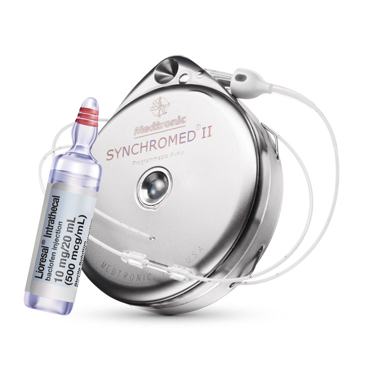 این حالت در بیماران مبتلا به مولتیپل اسکلروزیس (MS)، فلج مغزی (CP) یا آسیب‌های نخاعی دیده می‌شود. عضلات آن‌ها دائماً در حالت انقباض هستند و حرکت را دشوار می‌کنند. داروی باکلوفن که در پمپ نخاعی تزریق می‌شود، به‌طور مستقیم بر روی نخاع اثر می‌گذارد و این اسپاسم‌ها را کنترل می‌کند.